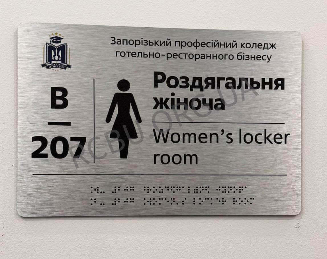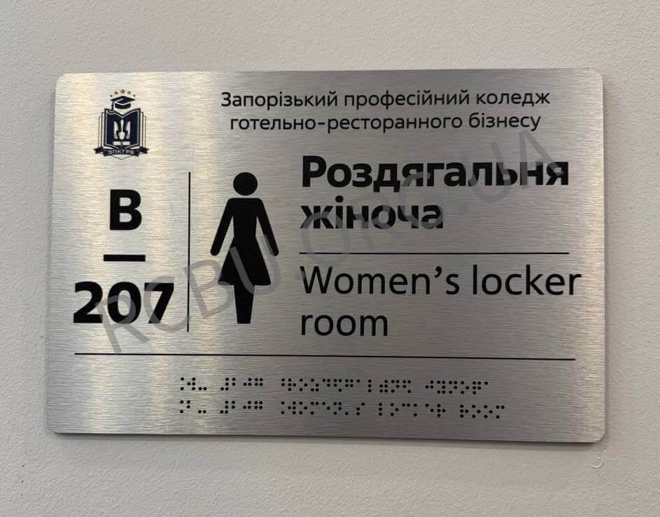 Interior signs with Braille on an aluminium plate are an important element in creating an accessible and inclusive environment in public places. This sign helps people with visual impairments and reduced mobility to easily navigate and find the rooms and places they need.
