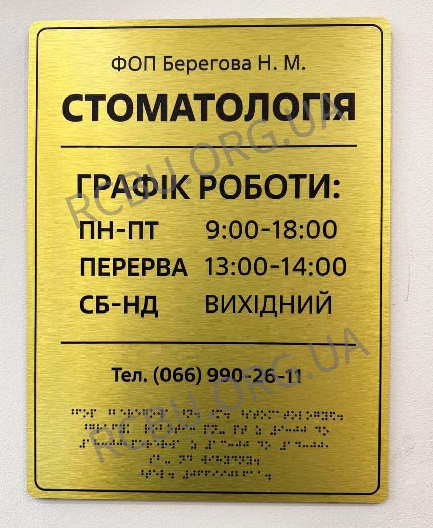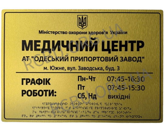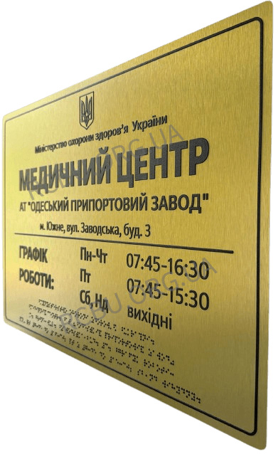 Наша уникальная вывеска предназначена для использования как в помещении, так и на улице. Она является идеальным решением для незрячих и лиц с нарушением зрения. Шрифт Брайля, которым она оборудована, делает ее доступной для всех. Материал, из которого мы изготавливаем вывеску-табличку, является долговечным и устойчивым к любым погодным условиям.
