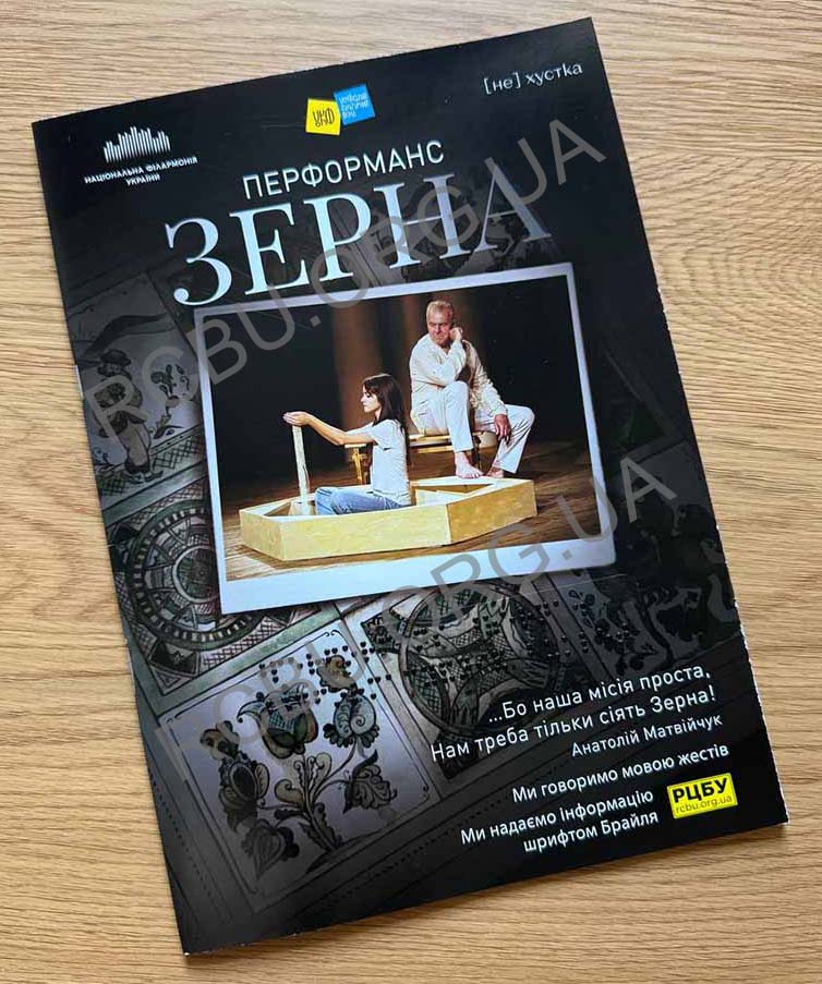 Такой подход делает программки гибким инклюзивным инструментом: они учитывают различные способы восприятия информации, поддерживают равный доступ к культуре и усиливают чувство вовлеченности каждого зрителя. Среди реализованных примеров — программка к перформансу «Зерна» в Национальной филармонии Украины, как часть этой серии.