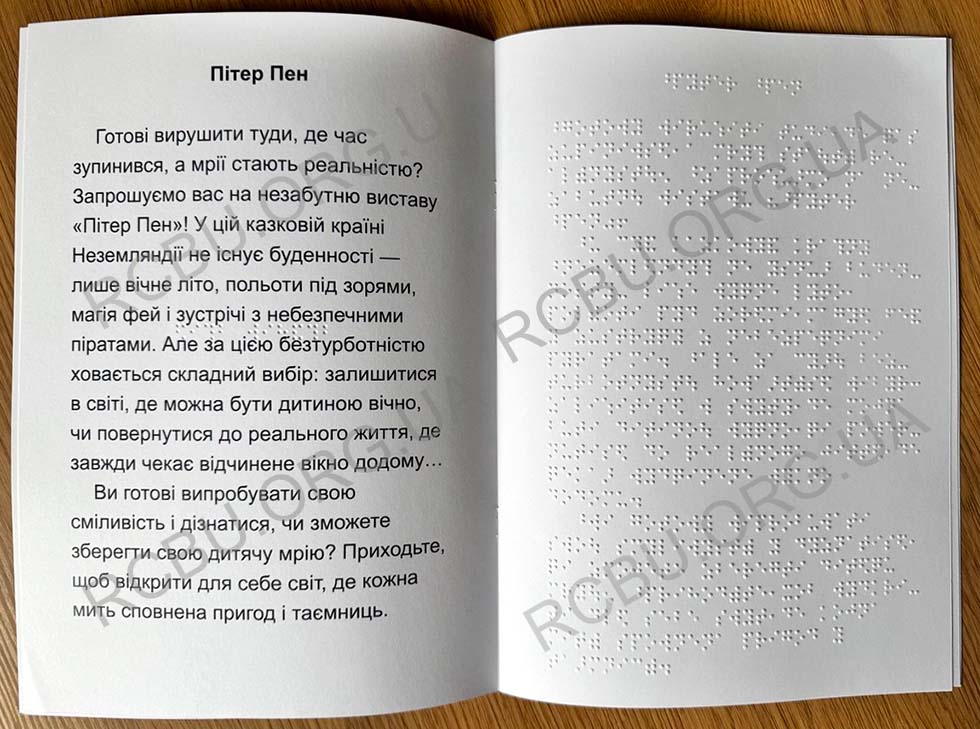 Каждая программка изготавливается из плотной, приятной на ощупь бумаги и имеет продуманную структуру, удобную для тактильного и визуального восприятия. Тексты программ, описания спектаклей и дополнительная информация дублируются шрифтом Брайля, что позволяет незрячим и слабовидящим зрителям самостоятельно ознакомиться с содержанием мероприятия.